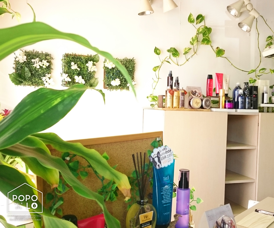 店内は植物・木材を使用し 大型サロンが苦手の方や、日々お忙しい方がゆっくり寛げる空間になっています。