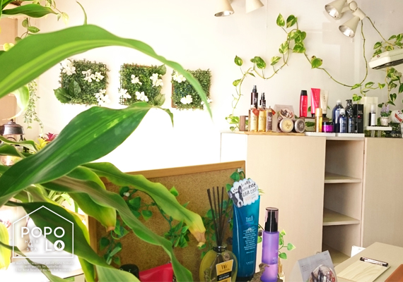 店内は植物・木材を使用し 大型サロンが苦手の方や、日々お忙しい方がゆっくり寛げる空間になっています。